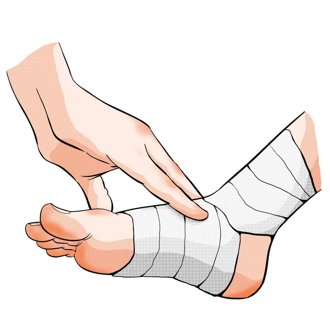 ◆ 在扭伤发生的24小时内,尽量每隔一小时冰敷半个小时,将受伤部位用弹性压缩绷带包扎好;