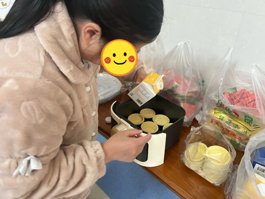 为丰富服务对象的生活,增加生活的乐趣,社工和志愿者带领服务对象学习了蛋挞的烤制和果盘的摆放技巧。在掌握蛋挞烤制流程、温度和时间等要求后,大家自己动手将蛋液倒入蛋挞皮,随后将制作好的蛋挞放入空气炸锅中,设置好温度和时间,活动室内弥漫着蛋挞的香气。在蛋挞烤制的同时,大家也在分工合作摆放着果盘,伴随着欢声笑语,一个个精美的果盘呈现在大家眼前。随着蛋挞的出炉,大家一起分享了自己的劳动成果,分外香甜。