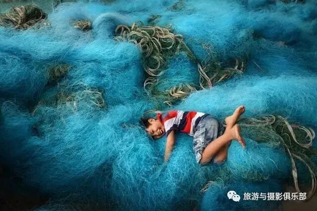 我与图中男孩建立了融洽的关系,我鼓励他去玩渔网。我做了个示范,跑着,跳进网里,逗他大笑,他也跟着做。我拍下了这张照片,当时我知道相框里必须装满蓝色的渔网,才能引起大家的兴趣。他真诚的微笑和动作让这张照片看起来更加有趣和愉快。