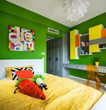 卧室的色彩搭配首要要素便是舒适,色彩应以统一、和谐、淡雅为宜,比如墙漆、家具、床上用品等尽量不要用强烈的对比色,避免太强烈而影响入眠。对局部的颜色搭配也应慎重,稳重的色调较受欢迎,如绿色系活泼朝气,蓝色系清凉浪漫,灰或茶色系灵透雅致,黄色系温馨浪漫。
