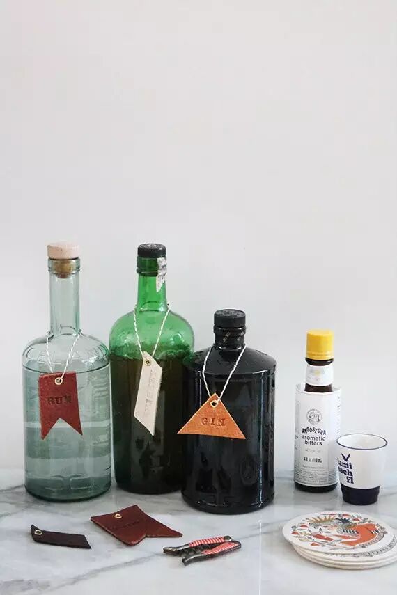 不同色泽的皮革酒标,为酒瓶带来更细腻的气息。如果你的他喜欢喝酒,不妨试试做酒标送他。