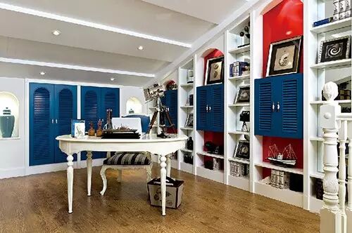 ◊富有科幻色彩的阅读室兼娱乐区,以大红与湛蓝色调搭配,启发孩子的星际航天梦想。