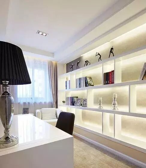 4、隔断带来多功能 在小空间内加入一个多功能的书房,只能巧妙地运用隔断,不仅可以提高空间的利用率,还实现了各个空间的互动和交流。