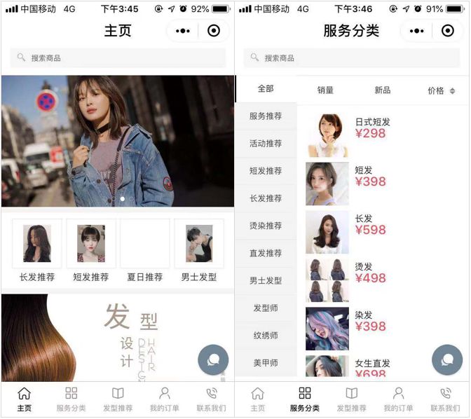 1)将店内各项美发护发套餐内容、价格、效果等以图文直观展示,为顾客选择合适美发服务提供参考。