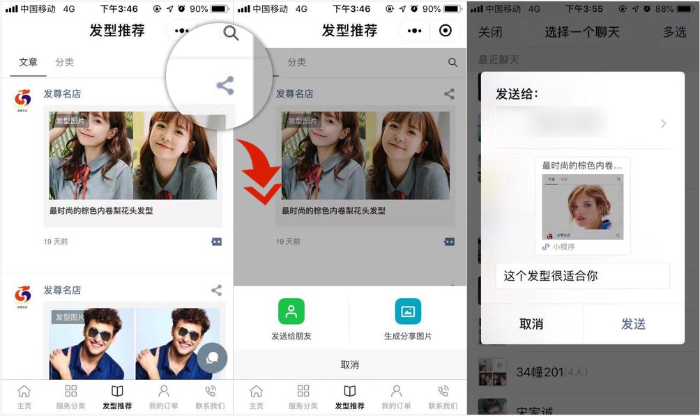 2)通过博客功能推送美发相关文章吸引顾客阅读,既提升老顾客复购,也吸引新顾客消费。