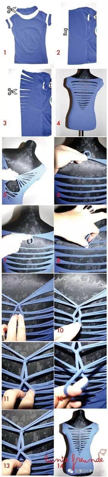 8.保守t恤改造成大露背,这个跨度有点大,小编不多说,咱还是看图吧。