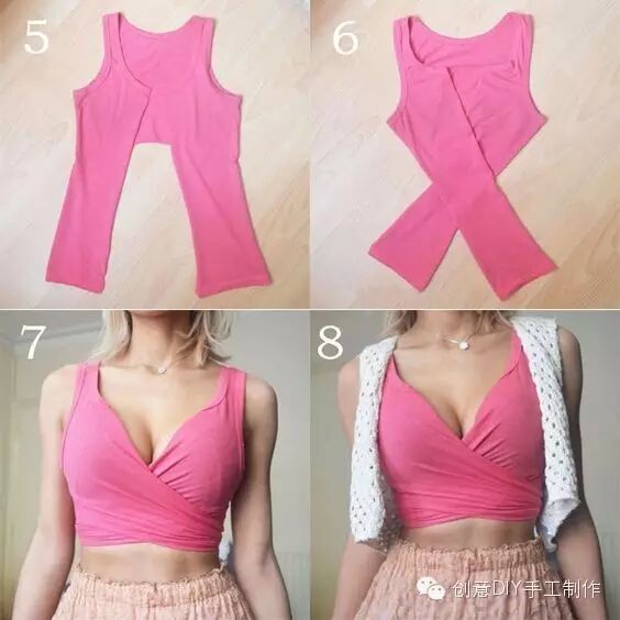 5.把旧背心裁剪成以下形状,变身火辣裹胸上衣