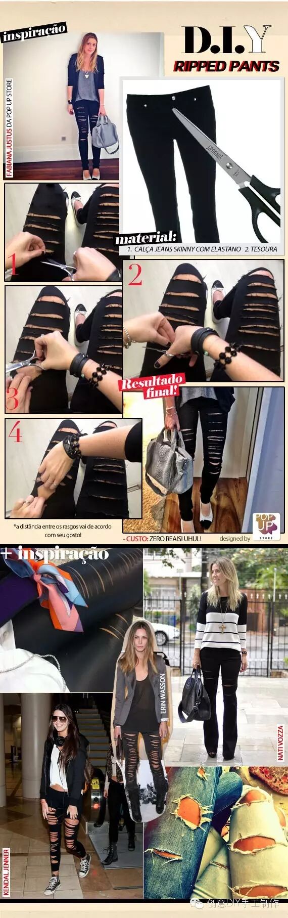 用剪刀如下图剪,出来的效果有种大牌欧美的风格