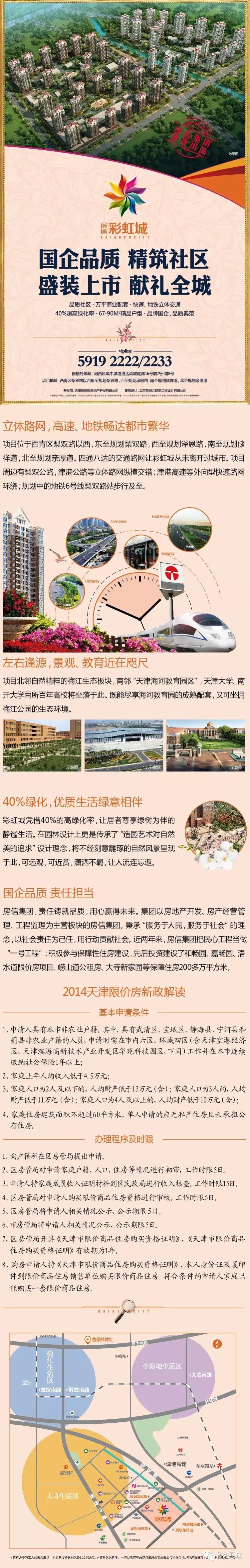 房信彩虹城,2015年天津市最受期待的限价房项目。坐拥津南,上风上水,宜居大盘。