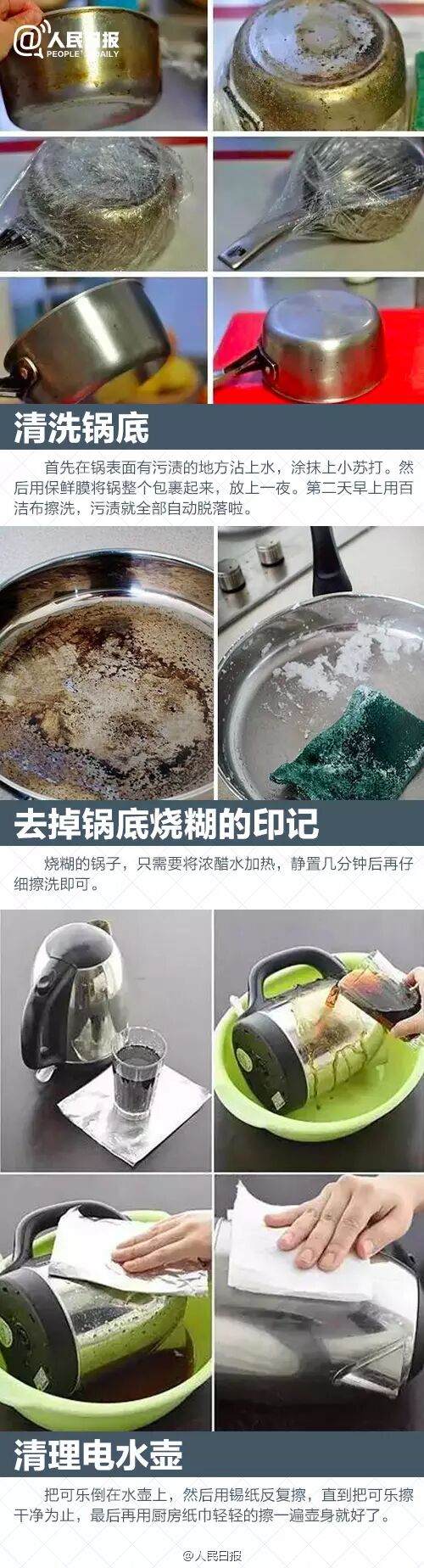 厨房和卫生间总是家庭清洁里最让人头疼的地方,想让厨房和卫生间变回最初干净纯白的样子吗?油烟机脏:温水+食用碱;锅底黑:小苏打+保鲜膜;水龙头污垢:肥皂水+醋+柠